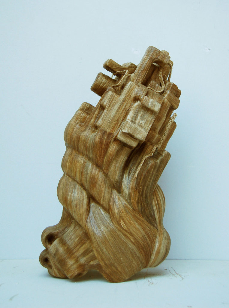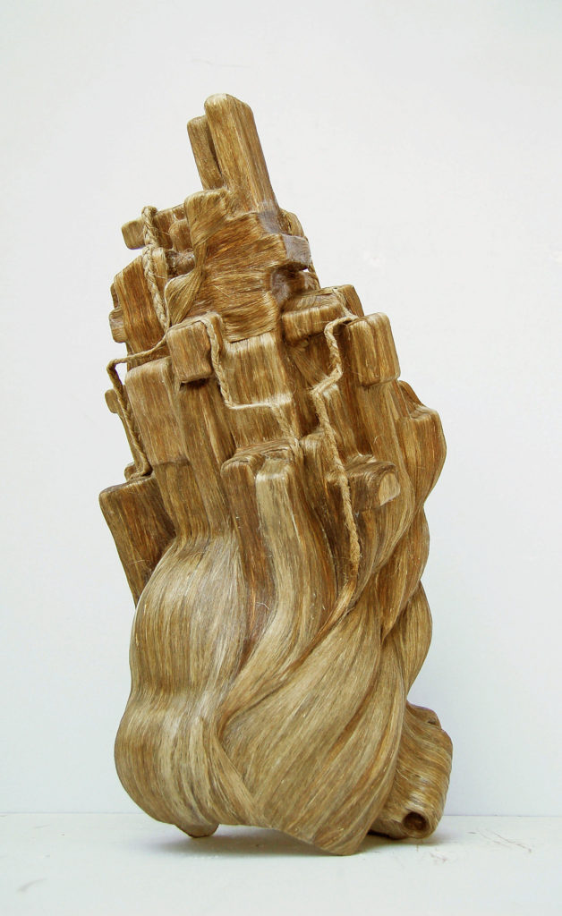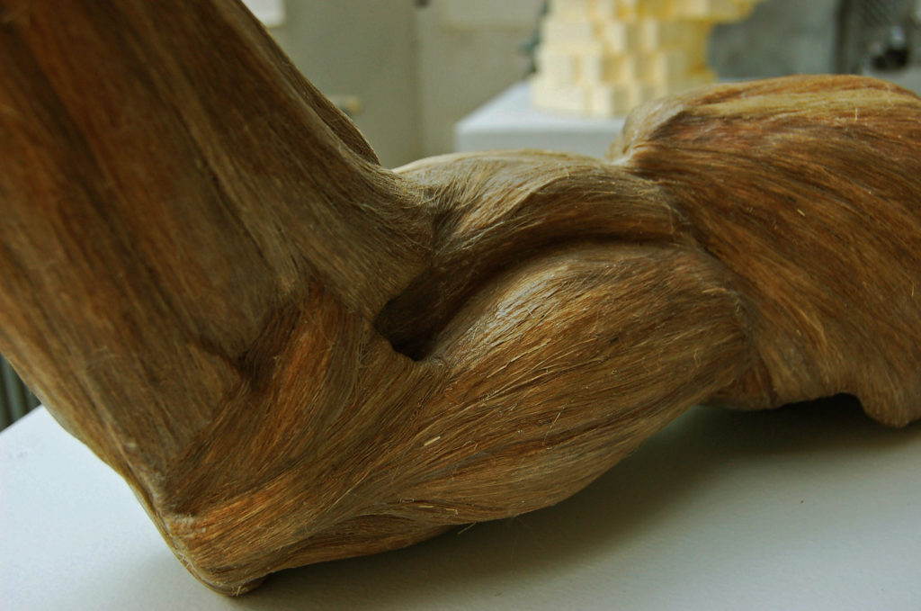 Plastika je inspirována Biblickým příběhem o Samsonovi. Příběh vypráví o muži, který dostal od Boha nadpřirozenou sílu, která byla vložená do jeho vlasů. Dokud měl dlouhé vlasy, byl nepřemožitelný, když mu je lstí ostříhali, ztratil svou sílu a byl přemožen a zabit. V této plastice jsem se zabývala anomálií dané situace, kdy podstata síly není uložená ve svalech, jak by se očekávalo, ale ve vlasech. Hledala jsem, jak tuhle zvláštnost vizuálně vyjádřit a našla jsem pojítko ve skutečnosti, že vlasy i svaly jsou ze své podstaty vlákna, i když mají odlišný charakter. A tak jsem vytvořila modelovanou sochu, která připomíná svalový pletenec ruky, který je pokrytý vlasama.